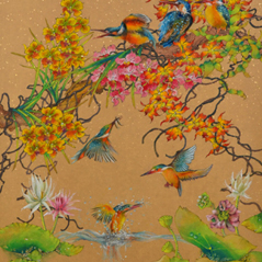 Tang studied a component of Chinese painting during his diploma course, which included traditional brush painting and calligraphy. This technique of fine brushwork has
